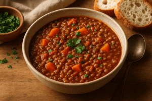 3.Simmer 15 minutes (covered) until lentils are soft.