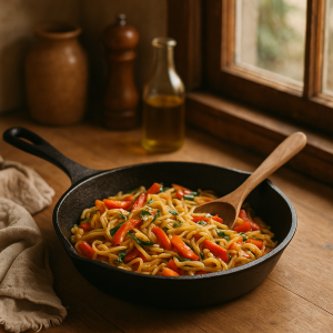 - Stir-fry for 3β5 minutes until everything is glossy and hot.